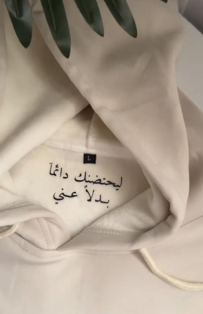 خلّك دايم دافي وأنيق مع هودي “ليحتضنك دائمًا”. الهودي هذا مصنوع من أفخم الخامات، وفيه رسالة من داخل تقول: “ليحتضنك دائمًا بدل عني”، كأنك تاخذ حضن دافي معك وين ما تروح. تقدر تختار اللون اللي يعجبك من الرمادي، الأسود، الأبيض، والكحلي. ومو بس كذا، تقدر تضيف تغليف خاص مع كرت برسالة منك أو حتى تغير الرسالة اللي جوّا الهودي حسب طلبك، عشان يكون الهدية المثالية لأي شخص غالي عليك.”