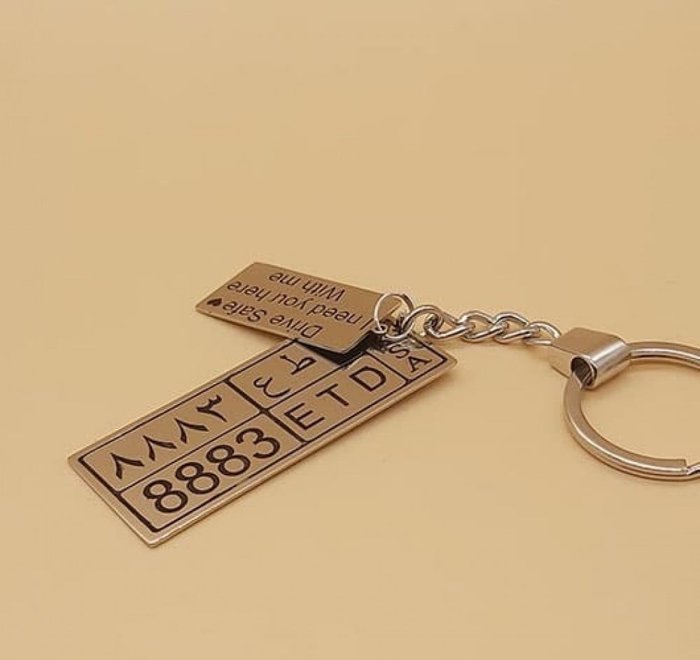 ميدالية مفاتيح لوحة السيارة – تميز باسمك أو عبارتك مع ضمان لون وتغليف فاخر