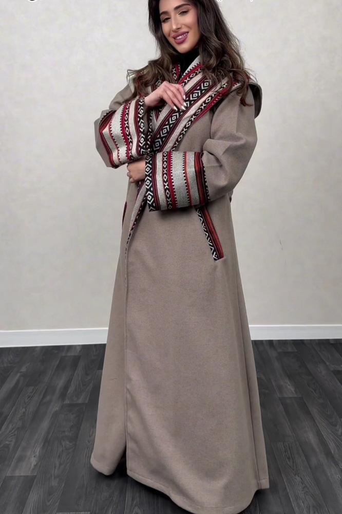 استمتعي بالدفء والأناقة في هذا البشت الشتوي المصنوع من جوخ عالي الجودة, والمطرز بنقوش السدو التراثية التي تعكس متكاملة خلال الأيام الباردة.الالون المتوفرة بيج و اسود